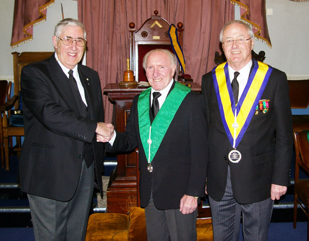 | Following the Installation Ceremony W.Bro. Colin Bayliss as the Representative of the District Grand Prefect congratulated W.Bro. Ron Pearson on becoming Master of St Georges Council, wishing him well for the future. He also commented on the high standard of Ritual worked in both the Installation Ceremony and the Ceremony of Grand Tiler of Solomon. |