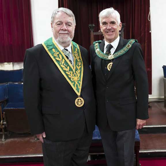 | After a short Introduction about the Deputy Prefect designate the District Grand Prefect asked the Deputy Grand Director of Ceremony to reform the escort and escort the Deputy District Grand Prefect designate Worshipful Brother William Lawrence Richmond Grand Junior Deacon into the Lodge Room. The Deputy District Grand Prefect designate was presented to the District Grand Prefect for Installation. The ceremony was conducted with the dignity and decorum we know the District Grand Prefect is capable of. The Deputy District Grand prefect was escorted to his place in District Grand Council and saluted to which he to suitably responded. |