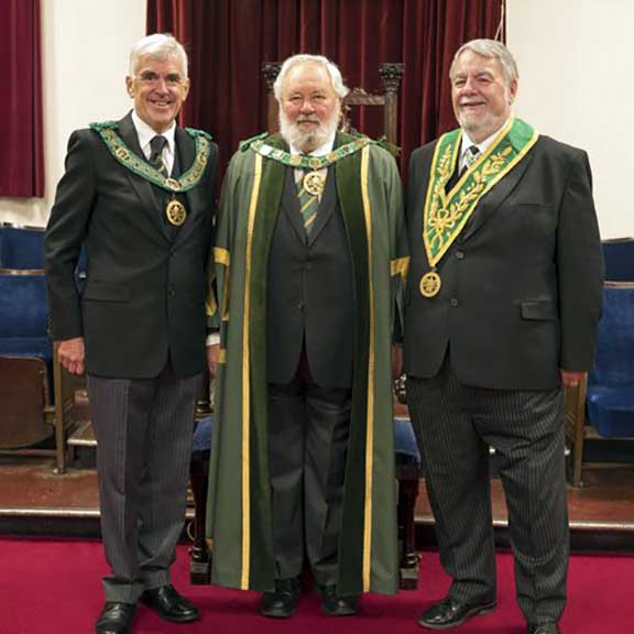 | The Grand Master then gave a brief history of West Lancashire and The Past District Grand Prefect who he thanked for the work he had achieved during his tenure, although in his absence. The Grand Master then directed The Grand Director of Ceremony to form an escort for The District Grand Prefect designate, which consisted of Master and Past Masters of the councils chosen by the District Grand Prefect designate, to present him to the Grand Master. |