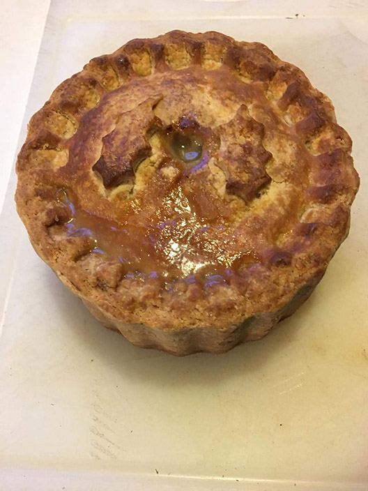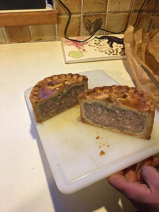 | As an aside, being a pensioner and living in the darkest and most deprived part of the Parish here at Coccium Towers, I can’t afford to eat turkey (I’ve told you to put thank Hankie away), even when it falls of the back of a lorry. Never mind, in this Parish the main delicacy is a concoction of golden pastry filled with a gastronomic delight of flavoursome Pork, or meat and potato or steak and kidney etc. In fact, all the recent panic buying in my township wasn’t about toilet rolls and hand sanitizer! A rumour emerged that Greggs, Galloways and other pie makers of distinction were going to shut up shop for the duration. Before you could say Jack Robinson, the pies on supermarket shelves were plundered, not a crumb of pastry left anywhere. Even after 3 weeks there’s still a restriction being applied at the checkout, and you can only buy 3 pies at a time unless you have a chitty allowing you to purchase extra for disadvantaged persons (no, I don’t mean you William!). To top it off, the drive through pie shop (“We Bake U Take”) has also closed. | |