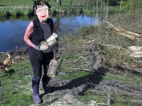 | Stop the press, I’m just starting to receive a really worrying news item via my tickertape machine. The information trickling through the wires concerns a forced labour camp which appears to have been set up within spitting distance of Coccium Towers. I’m not able to properly verify this at the moment, but I have received some pre lockdown photographic evidence. This story is being imparted to me by one of my grasses, sorry my West of Pennines News Editor, let’s call him William Wilberforce as he doesn’t want the taxman to know about his moonlighting. He is alleging that an Allied Mason is complicit in this shady operation and that female forced labour is being used in a logging camp sited somewhere in the woodlands of the northwest frontier, shameful if true! (Pre-lockdown evidential photograph shown below with victims face redacted to protect the innocent). | ||