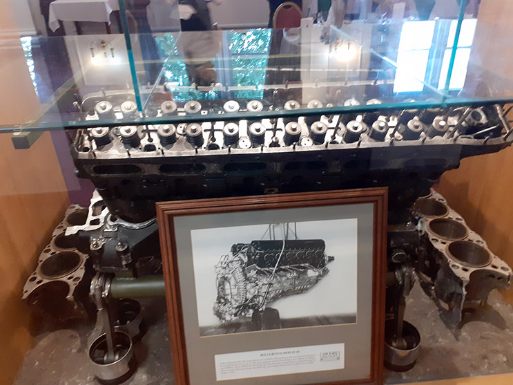 | Anyway, back to the travelogue. For the engineering or war history aficionados amongst you, you will be aware that Derby is a traditional centre of engineering excellence and is renowned for being a base for Rolls Royce. Not just cars but also for the manufacture of the famous Merlin engines used to propel cars and of course WW II aircraft such as the Spitfire and Hurricane etc. Thank goodness we had this engineering excellence to help the country cope with the ravages of WW II. Many thousands of these engines were built, and there is an example of a merlin III engine sited in a glass case inside the Masonic Hall. You can almost smell the oil, grease and aviation fluid just by looking at it, worth the visit for that alone. | ||