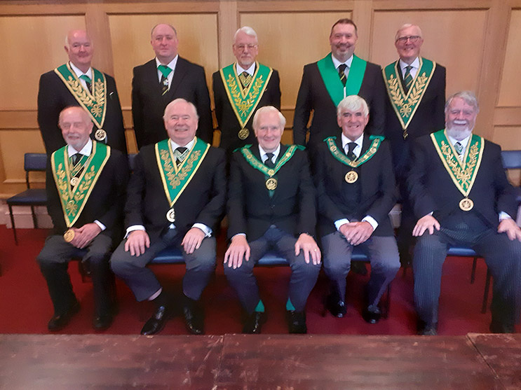 | On arrival, refreshments were at hand to top up the earlier bacon barm, and all was well with the world. As an aside, I’ve often thought that there should be a collective term for a gathering of District Grand Prefects, I think there were 15 or 16 present from all over the country on this occasion. Perhaps a ‘Redoubt’ or even maybe a ‘Dereliction’ of DGP’s may be appropriate (they had all left their own Districts to cope without them). Suggestions on a post card please, but don’t suggest something like a ‘Galaxy’, as we all know that can infer something dim and distant, and we recognise that DGP’s always provide clarity and wisdom to their flock (or do you know something that I don’t???). | ||