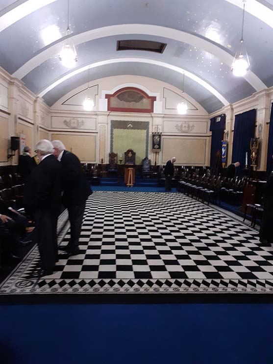 | I always commend the Lodge Room at Rochdale, it is so well appointed and contains much masonic symbolism around the walls, and if you haven’t visited this building you should do so if possible. The austere appearance of the external of the building belies what you’ll find within. |