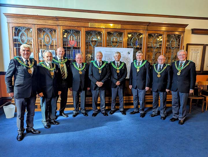 | At the Festive Board the host DGP gave permission for Brethren to remove their jackets, the majority of Brethren taking up the opportunity to cool themselves down. There were exceptions though, the DGP for West Lancashire issued a three-line whip to his Deputy and Past deputy, so these three Brethren kept their jackets on as a nod to Masonic standards. However, a certain Brother from East Lancashire, no name no pack drill, did suggest that this was less to do with Masonic standards and probably more to do with the West Lancs DGP’s shirt not being ironed. The truth is out there somewhere, but possibly half a goal to East Lancashire? |