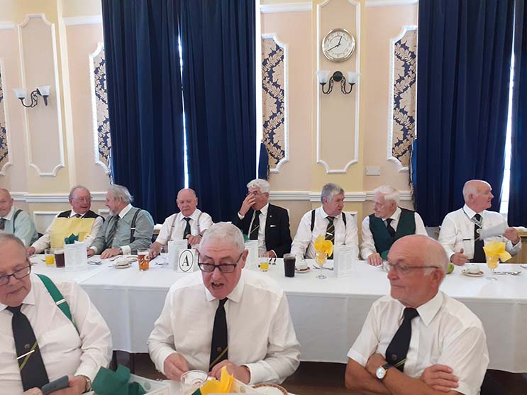 | Prior to the Festive Board, Paul bought the usual executive round of drinks for the West Lancashire contingent. There were so many Brethren in the round that his allowance from Sally wouldn’t run to also buying halves for East Lancashire Brethren who had a foot in the West Lancashire camp! |