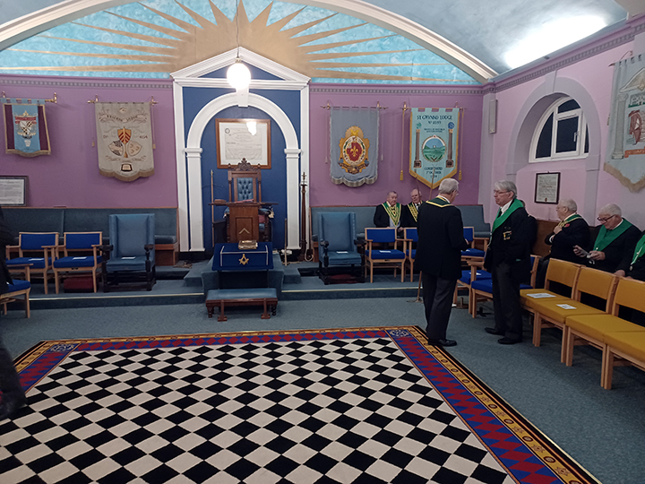 | Arriving at Pontyclun Masonic Hall they received a warm welcome from Ron Slater the District Grand Prefect, following the welcome they were able to meet friends and share a welcome cup of tea together with a plentiful supply of biscuits. |