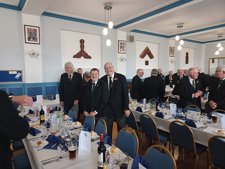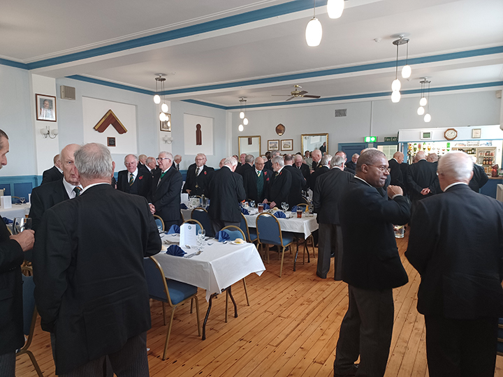 | Following the meeting around 90 members of the Allied Degree sat down to a magnificent four course lunch together with suitable quantities of wine followed by a glass or two of fine Vintage Port. |