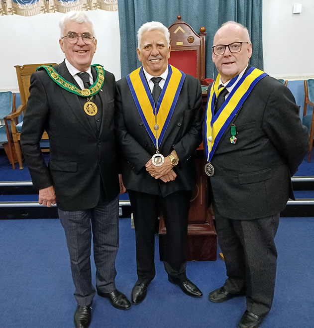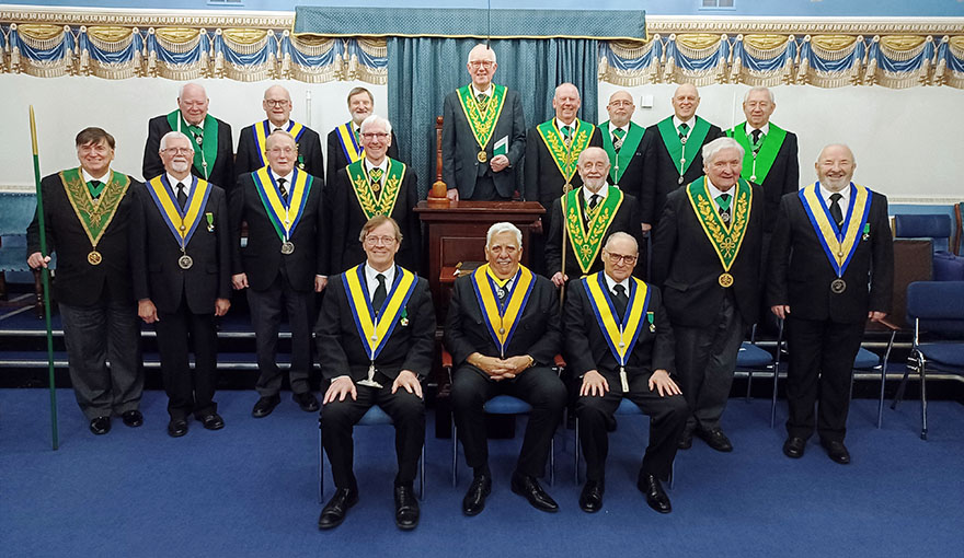 | Following the WM’s return to the Chair, and his response to the DGP, the District DC arranged a procession of the DGP and his team out of the Council to applause. Remaining Lodge business was conducted by the WM, and then the Lodge closed in due form. Photographs were then taken by one of our District Photographers for onward transmission into this article. |