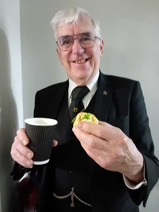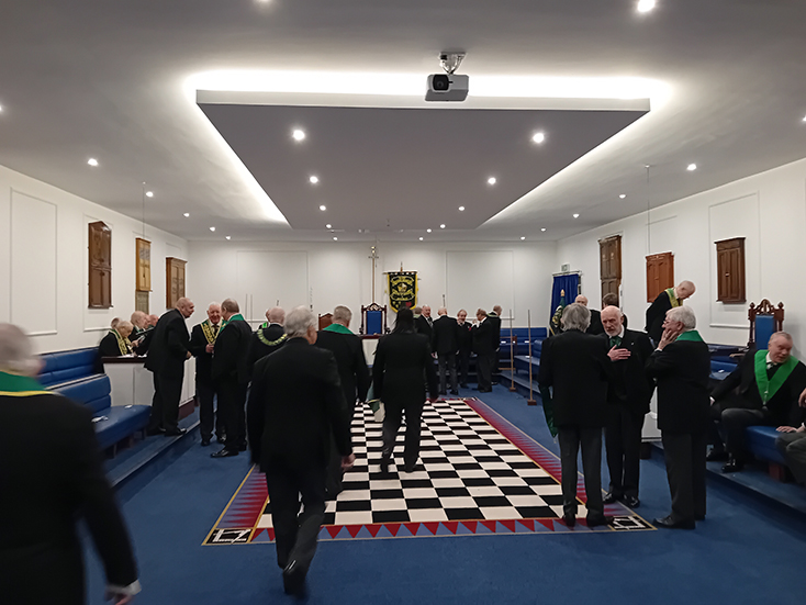 | We arrived at the Hall in good time and were able to relax with a cup of tea before the formalities started in the upstairs Lodge Room. The number of Brethren arriving early was a good indication that the event would be well supported. |