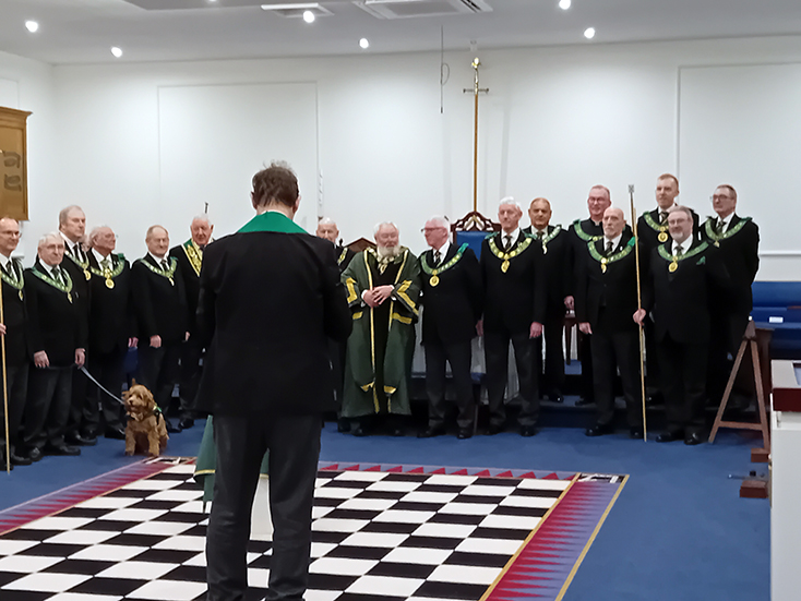 | A large number of Acting Grand Officers accompanied the Grand Master on this special occasion; but note the small assistance dog in the above photograph, who regularly attends these events, and is so accomplished in this type of ceremonial now that I believe that he is in the running for a DC’s job! |