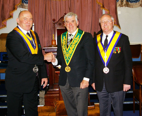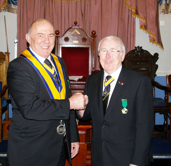 | Following the Installation Ceremony W.Bro. Colin Bayliss as the Representative of the District Grand Prefect congratulated W.Bro. Ron Pearson on becoming Master of St Georges Council, wishing him well for the future. He also commented on the high standard of Ritual worked in both the Installation Ceremony and the Ceremony of Grand Tiler of Solomon. |