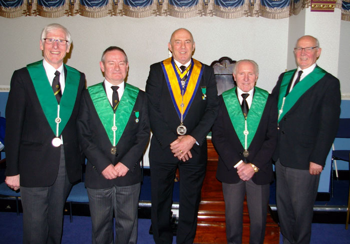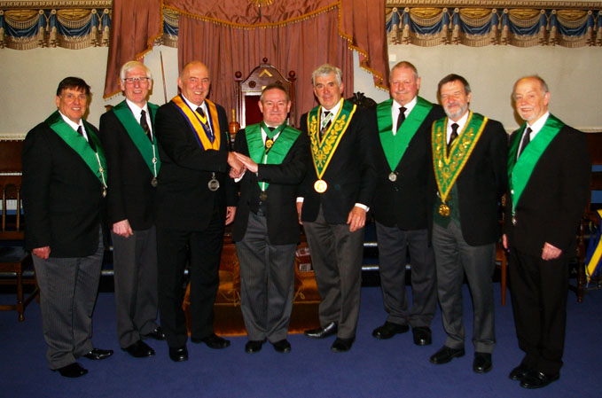 | On Friday 17th April members of St Georges Council No.4 welcomed W.Bro. Colin Bayliss Dist.G.J.W. to their Installation Meeting. On entered the Lodge W.Bro. Colin Bayliss as the Representative of the District Grand Prefect was greeted accordingly by W.Bro. Mike Hatton acting as Master. |