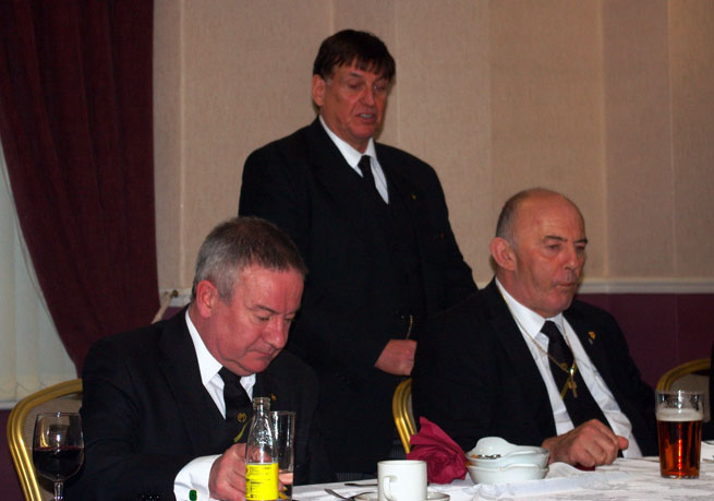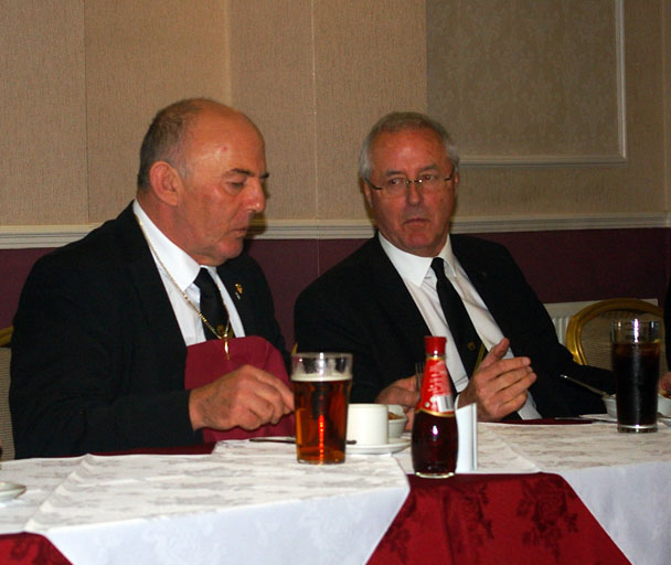 | In reply W.Bro. Ron Pearson thanks the District G.J.W. for his generous comments inviting him and all present to join him at dinner. |