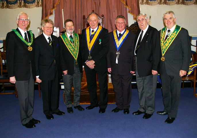 | He then invited Geoff Catterall and other members to assist him in performing a Ceremony of the Red Cross of Babylon. Bro. Mike Allen of St Georges Council and Bro.'s David Webster and Clive Butterworth both members of Viscount Leverhulme Council No. 263 were then Constituted as a Knights of the Red Cross of Babylon by W.Bro. Geoff Catterall. Geoff then presented the Lecture in this Degree. |