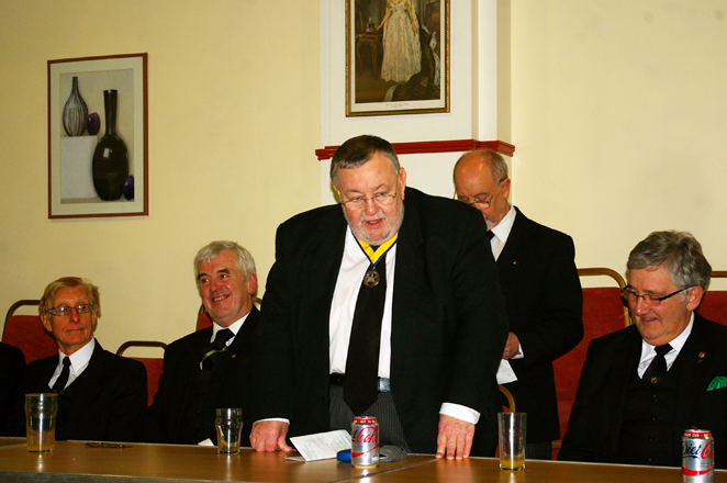 | In reply David Roberts thanks the Deputy District Grand Prefect for his generous comments inviting him and all present to join him at dinner. |