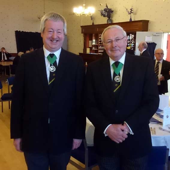 | Before the meeting the Grand Steward John Bicknell was able to chat to the Grand Sword Bearer Stephen Duffy who is also the District Grand Secretary. |