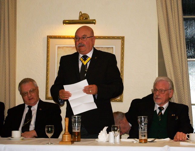 | After being welcomed by Ivan Millington acting as W.M. the District Prefect Bill Seddon thanked Ivan for his welcome then settled back for an enjoyable night of Allied Masonry. |