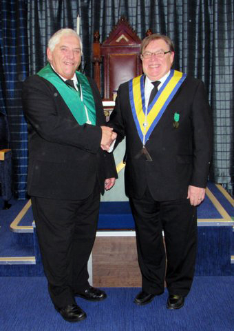 | The next Item was to present a Grand Council Certificate, The Worshipful Master invited The District Grand Prefect to perform the presentation which he said he would do it with pleasure. The District Grand Prefect presented Brother Stuart Brackstone with his certificate in a manner we have come to expect from our leader. |