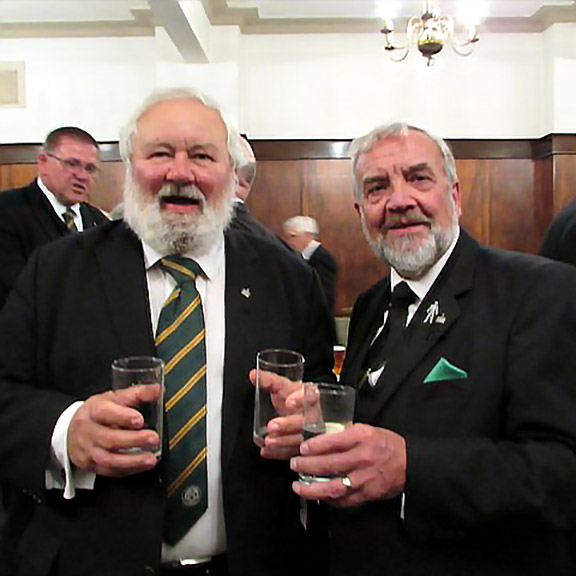 | The Grand Master then directed the Grand Director of Ceremony to conduct Very Worshipful Brother Douglas John Forster Past Grand Registrar to be presented to him. After a few well-chosen words he promoted brother Forster to the rank of Past Grand Junior Warden which as you know makes him a Right Worshipful Brother. To say John was shocked is an understatement one only had to see the look on his face, dumbstruck I think the word is. |