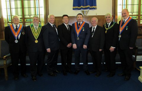 Next on the agenda was to Constitute and Create Knights of the Red Cross of Babylon Brothers David Sears, Ken Mullen and Peter Schofield. Like all epic productions a cast of thousands is required, well fifteen ish really. The cast in our epic, obviously well-rehearsed, did an excellent job and are to be complimented. The lecture in this degree was delivered by Worshipful Brother Ernest Gavan Past District Grand Junior Warden/District Grand Sword Bearer in his own inimitable manner (He wrote modestly).