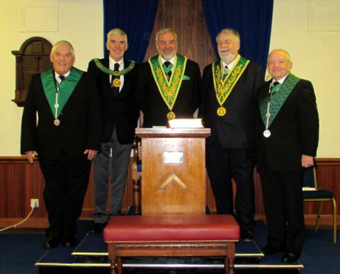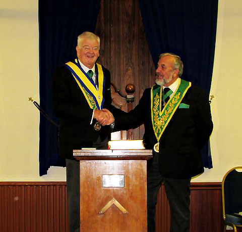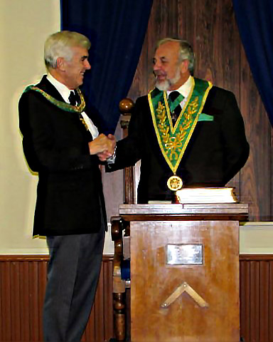 | Those Brethren that were not yet Installed Masters and who were asked earlier to retire for a short time, returned into the council and saluted the newly Installed Master. The Worshipful Master then proceeded to Appoint and Invest his Officers for the ensuing year, starting with The Immediate Past Master thanking him for his work in the past year also the Installation Ceremony and concluding with Worshipful Brother Peter S. Coates District Grand Tyler as Council Tyler. |
