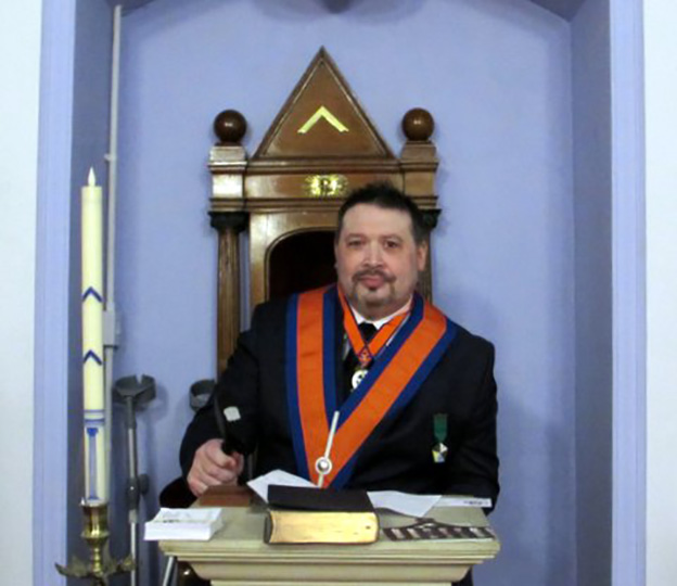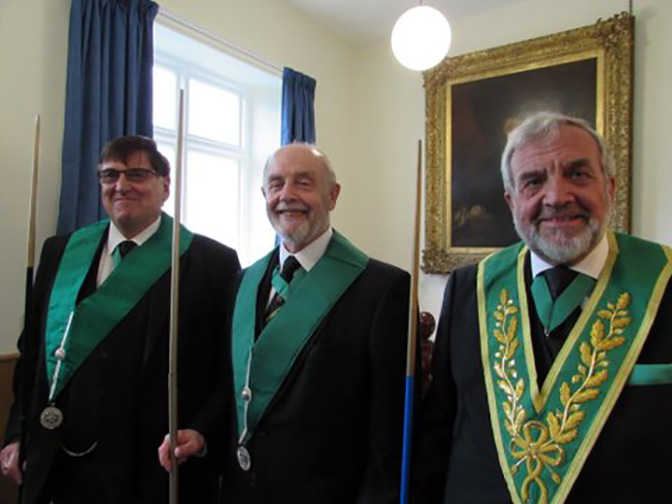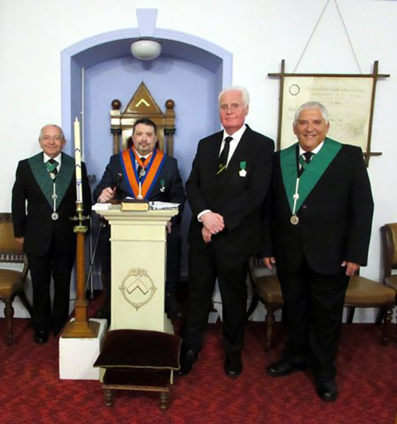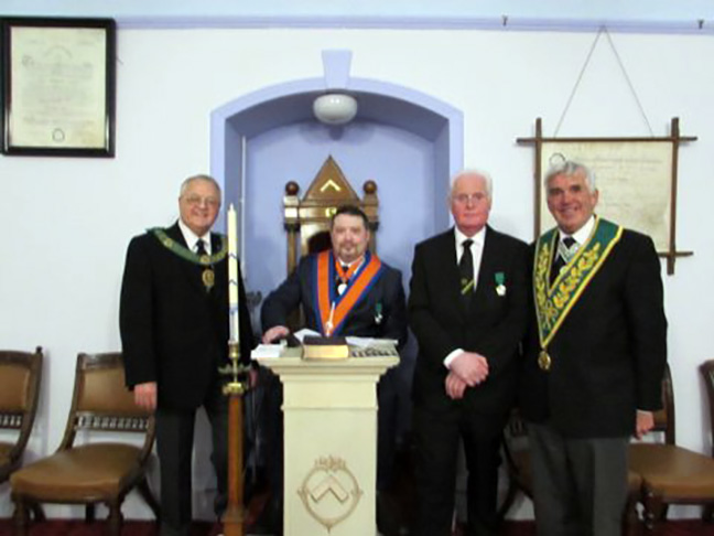 | The District Grand Prefect was bid welcome by the Worshipful Master Brother William Byrne. After salutations the council then commenced with the Installation Ceremony of the Master Elect Brother Marc William Lester Goldsworthy. The ceremony was conducted in an exemplary manner by the Worshipful Master. The newly Installed Master then appointed his officers for the year. |