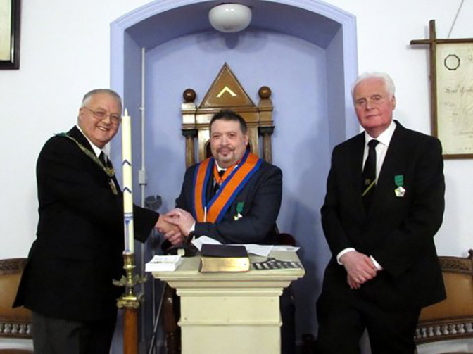 | The principal guest was the District Grand Prefect, Right Worshipful Brother William Richard Seddon. He was accompanied by the Deputy District Grand Prefect, Very Worshipful Brother Graham Paul Snape Past Grand Registrar, the two District Grand Wardens, Worshipful Brothers Keith Alan Beardmore Senior Warden and Howard Nicholas Emmett Junior Warden and a number of Acting District Grand Officers. |
