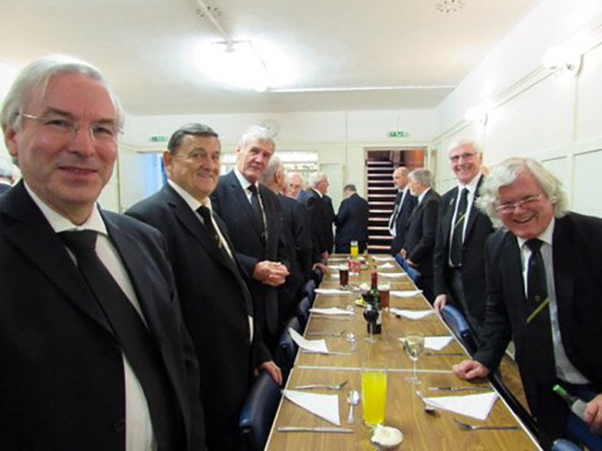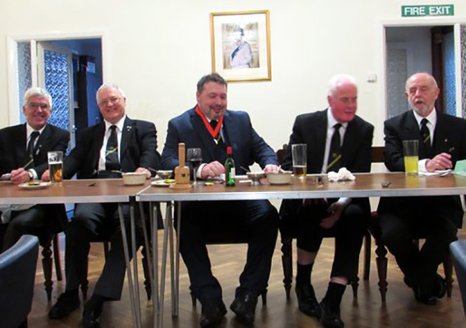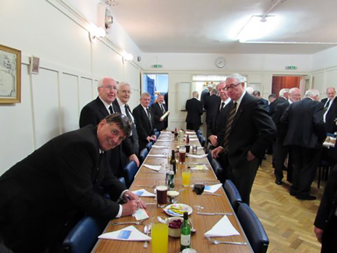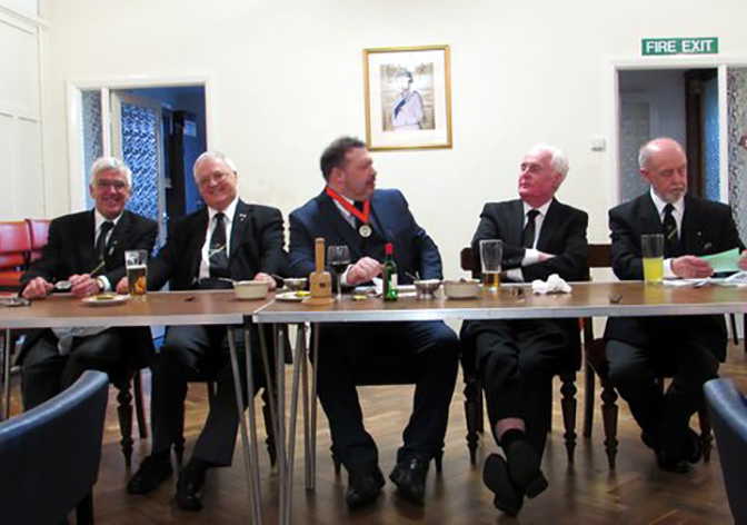 The District Grand Prefect then requested to retire, and he and his District Officers retired from the Council to await the closure of the Council and the customary photo-shoot. We all then repaired to the dining room to enjoy a meal most suitable for the time of year, mixed meat salad followed by trifle. The room was filled with noise of chatter and laughter, a sure indicator of an excellent meeting. |