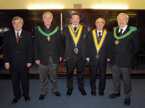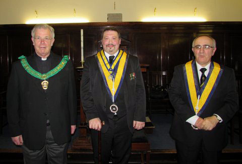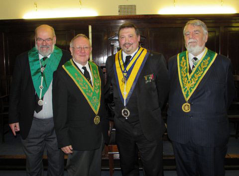 W.Bro Dave Russell, V.W.Bro Stuart Leach. W.M., W.Bro Bill Richmond