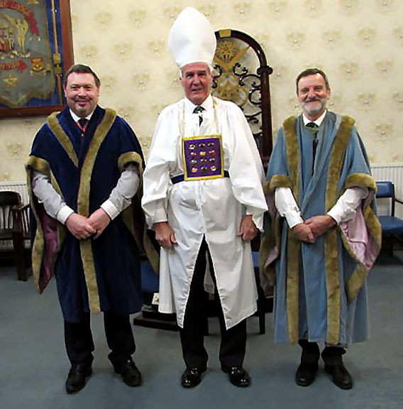 The next items were to declare Worshipful Brother Geoffrey Catterall Past Grand Junior Deacon / District Grand Secretary as Master Elect and Worshipful Brother Robert Dickinson Past District Grand Senior Deacon as Treasurer for the ensuing year. There being no further business in this part of the Ceremony the Worshipful Master closed the Council and we all adjourned to the Downstairs Lodge Room for the next item of business to Admit to the Order of Grand High Priest Brother Michael John Clarke and sixteen other Brethren. |