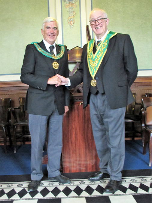 D.G.P greets V.W. Bro. Robert S.C. Mitchell P.G.Reg District Grand Master of Lancashire Royal & Select Masters. |