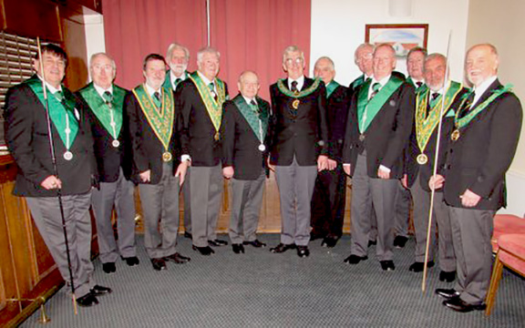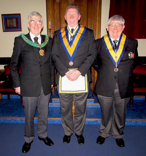 | The council was opened by the Worshipful Master Brother Robert Alexander McMillan at 7.00PM and the domestic business of the council completed. On a report the District Grand Director of Ceremony Worshipful Brother Raymond Pye Grand Steward entered the council and announced The Right Worshipful District Grand Prefect and his District Team were without and requested admission. The District Director of Ceremony called the Brethren to order and Right Worshipful Brother Graham Paul Snape and his District Team entered in processional order. The District Grand Prefect, occupied the Master Chair and after the salutations introduced his District Team along with One Right Worshipful Brother, Three Very Worshipful Brethren, and Ten Grand Officers. |