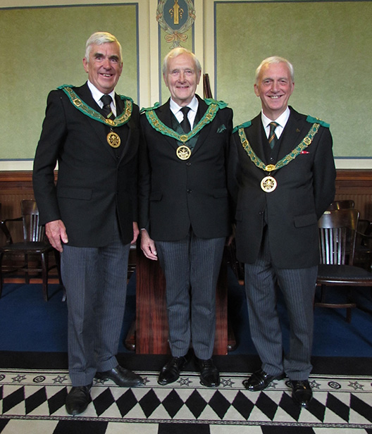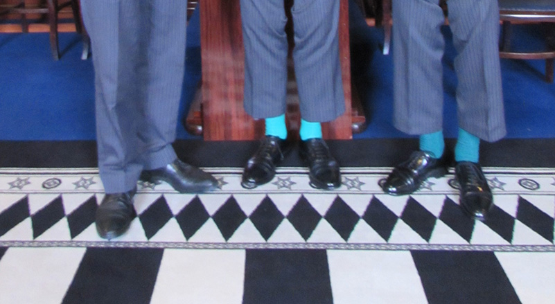 Which one of these three Brethren is not wearing green socks to an Allied Masonic Degree Meetin? |