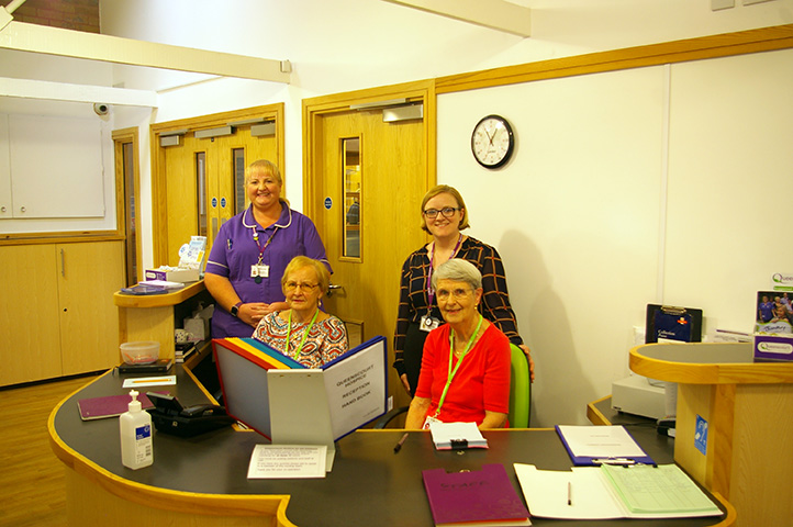 | Queenscourt is situated quite close to the busy main road into Southport, but turning into its car park we suddenly find an attractive modern building, surrounded by trees, a quiet oasis of calm in a caring protective environment. A very warm welcome was given to us by volunteer receptionists Margaret and Joan together with Community Fund Raiser Rachael Kennedy, and Deputy Coordinator for the Queenscourt At Home Project Kathy Kirkham. |