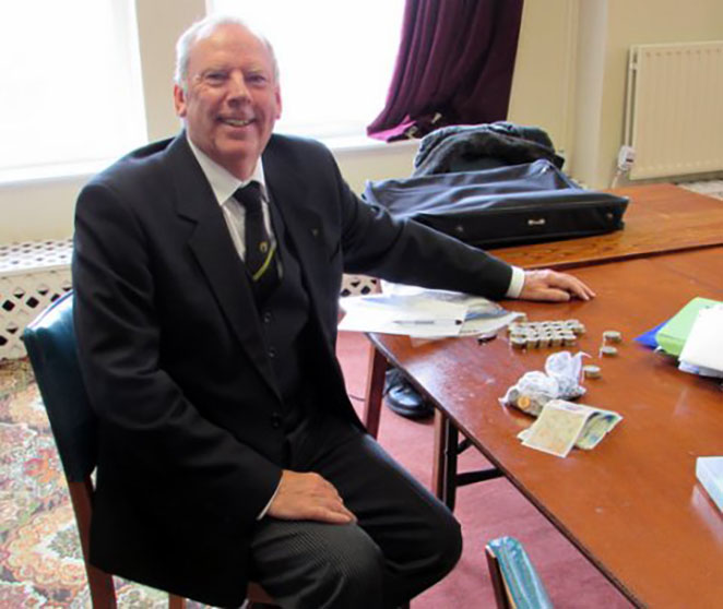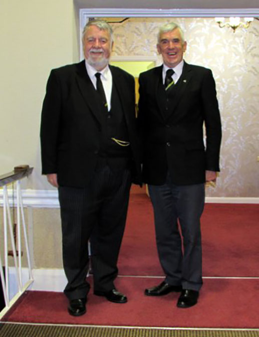| The Brethren in compliance with the request to be seated by 10.45am took their seats in the upper temple. The Distinguished Guests from other Districts were introduced and escorted into the Temple by Acting Deacons Worshipful Brother John Charles Bicknell Past Grand Steward and Worshipful Brother Ernie Gavan Past District Grand Junior Warden / District Grand Sword Bearer. The District Director of Ceremonies formed a procession and the District Grand Officers entered the temple and formed a guard, then he announced the entrance of the District Grand Prefect for West Lancashire. The District Grand Prefect Right Worshipful Brother Graham Paul Snape was escorted to his seat in District Grand Council and saluted with the District Sword and Standard a practice seldom seen outside of West Lancashire. |