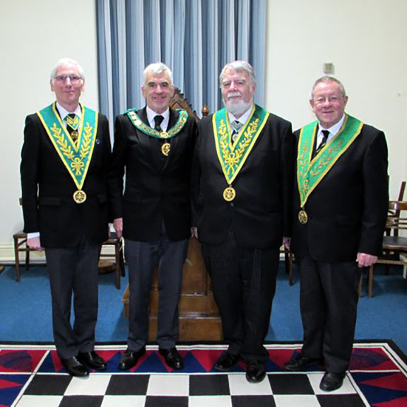 W.Bo.E.Gavan, W.Bro.J.C.Bicknell, Dep.D.G.P., D.G.P.,W.Bro.R.Pye, Bro.D.Webster. |