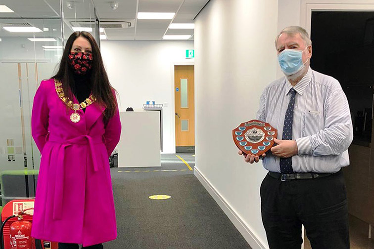 | The final award is “The Mayors Award”, awarded at the discretion of Garstang's Mayor Cllr Elizabeth Webster... “Well this was a very hard decision, as you have heard tonight there are so many people and groups within our community that all do such wonderful work, some very well known within our community and some are hidden little gems! After much thought the mayors award is going to a gentleman who has worked years at the local firm, Towers and Gornall for 57 years.” |