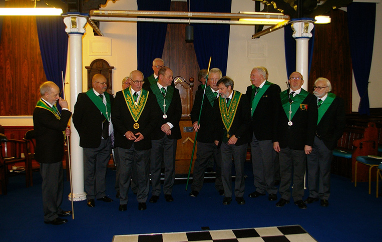 | First up the Introduction to the Order of two Brethren, David Robinson and Paul Wharton were Admitted into the Degree of St. Lawrence the Martyr, the ceremony was carried by the Master Richard Higson, the Lecture was presented by Geoff Catterall. The next business was the Installation as Master of Bro. Bill Bruce; the Ceremony of Installation was carried out excellently by the Master Richard Higson. |