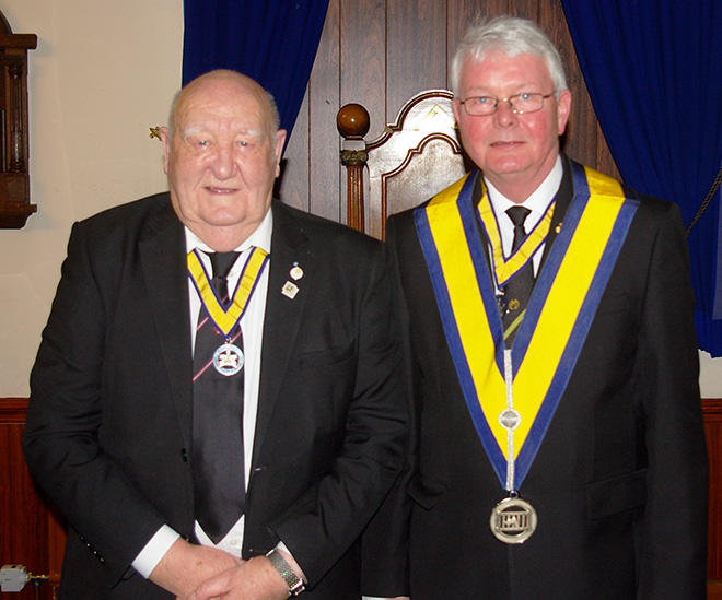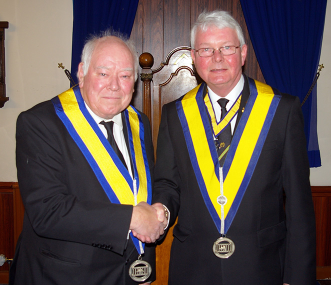 | Following the Installation Ceremony both the Grand Master and the District Grand Prefect congratulated Bill Bruce on becoming Master of Lawrence Council, both wished him well for the future he also congratulated W.Bro. Richard Higson for his work over the past year and for the high standard of both Ceremonies. |