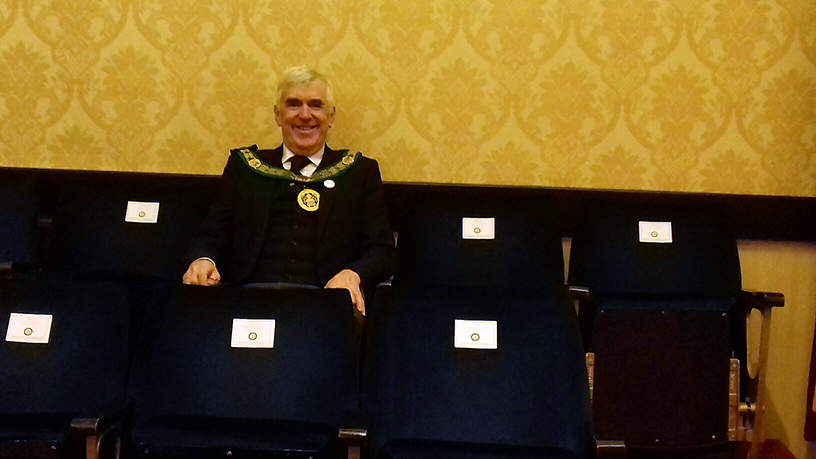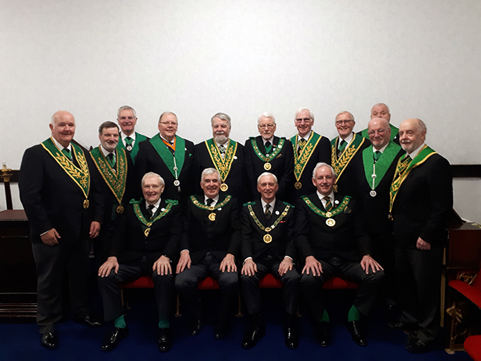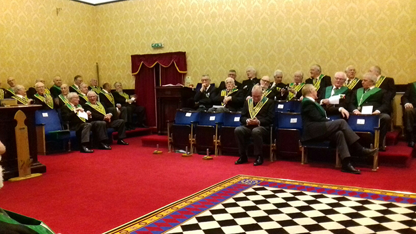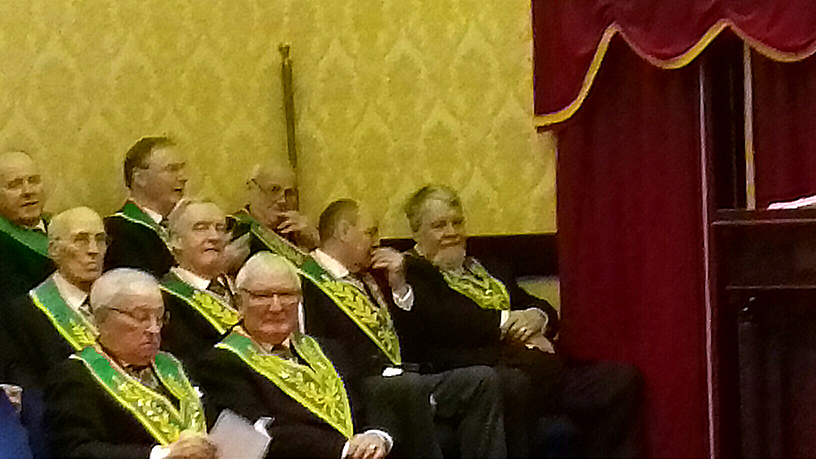 | The meeting started in a calm enough way with the usual mixture of processions, welcomes and salutations. The Grand Master then entered under the direction of the AGDC (also N&D District DC) along with Acting Grand Officers to great applause. The anticipation and tension was building nicely and eventually could have been cut in strips and served with gravy (in fact strips of beef in gravy was the main course at the festive board – coincidence or what?). However, all eyes were on the Grand Master, the question on everyone’s lips “what is he here for”……., I suspect that some Brethren were already in the know, but lips were sealed. |
