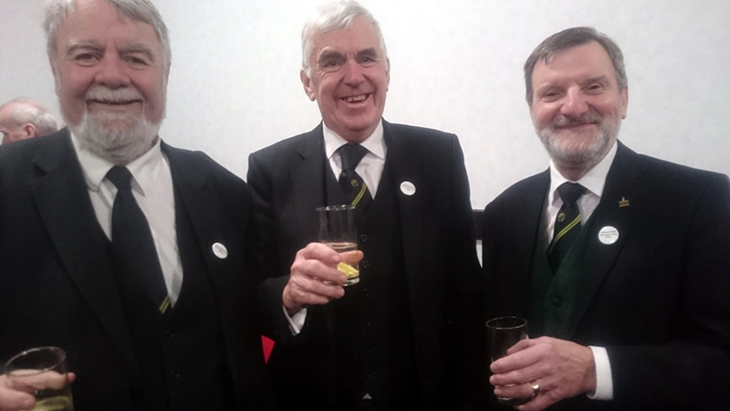 | Our DGP isn’t as thrifty as me (no I’m not a miser!) and at the festive board he proffered his usual gesture, asking his “very skilled, articulate and hardworking District DC” (his exact words!) to arrange drinks on him for the West Lancashire Brethren present. Even one of our East Lancashire Brethren cheekily got in on the act and benefitted from our DGP’s extremely generous nature. |