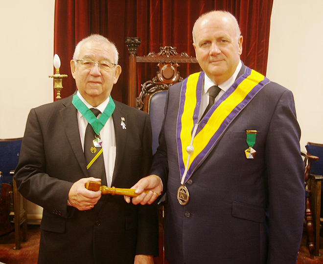 | At the end of the meeting, the District Grand Prefect Paul Snape congratulated David on becoming Master of Meridian Council, wishing him well for the future. He also thanked Gordon Pilkington for his work Installing his successor and for his work since October 2019. |