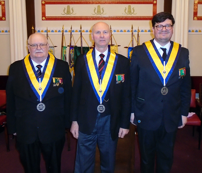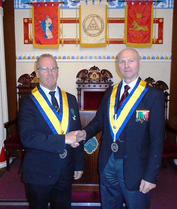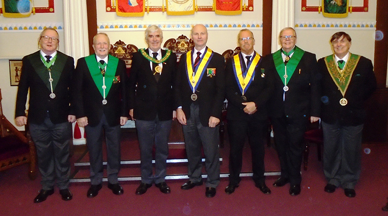 The Ceremony was witnessed by the District Grand Prefect Paul Snape, the District Senior and Junior Wardens Ian Nairn and Allan Comber, Ray Lamb Dep.Dist.G.D.C., Eric Pool District Grand Senior Deacon who is also a member of the Council.