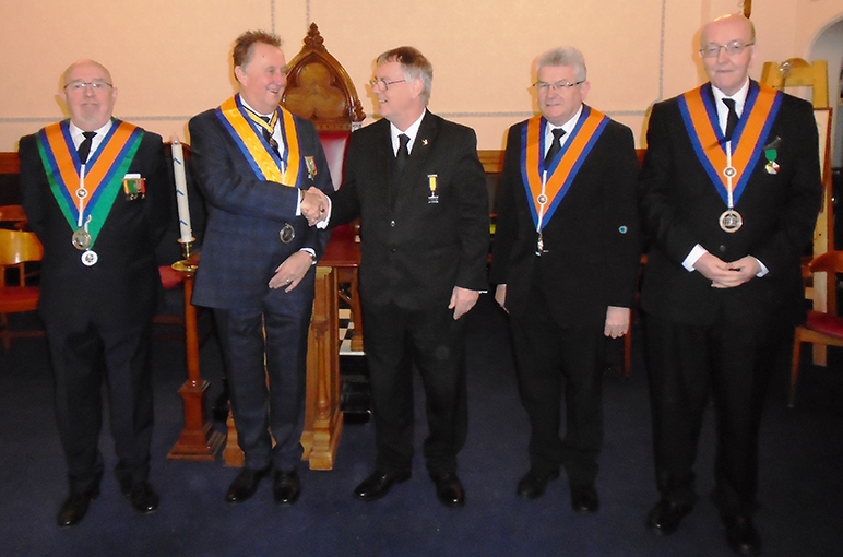 After a few items of an administrative nature the next item on the agenda was to Introduce, Receive and Admit Brother Chris Sage as a member of the Council. The Worshipful Master invited Worshipful Brother Ernie Gavan Past Grand Standard Bearer to occupy the master’s Chair to conduct the Ceremony of St. Lawrence the Martyr. The District Grand Prefect, Worshipful Master and Brother Gavan welcomed Brother Sage to Council on the Fylde and the Allied Masonic Degrees in general and having the foresight to join such an excellent Order.