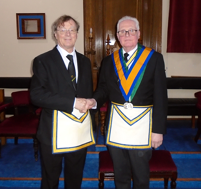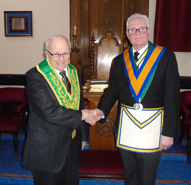 Bill Byrne congratulates V.W.Bro. Ian Kennon |