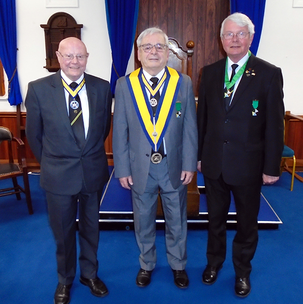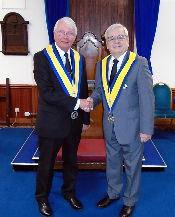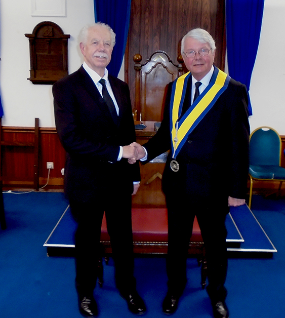 | Before Patrick took his seat in the Council, Alan Comber District Grand Junior Warden welcomed him to the Order, he also commenting on the high standard of the Ceremony. |