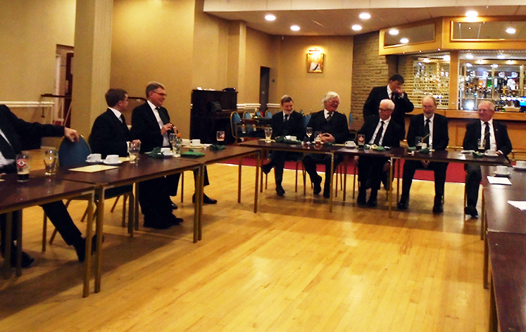 | Before any further business could be conducted a knock came from the door, who could this be, a member delayed by traffic?, a surprise guest, Paul Snape the District Prefect, Bill Bruce welcomed him to the meeting, then another knock on the door, another member delayed by traffic ?, you may have guessed, none other than the Grand Master Tom Jackson, Bill Bruce welcomed him to the meeting, when all where settled off we go. |