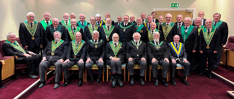 | The remaining formal business on the summons was then concluded, and the Council was closed in due form. The Grand DC arranged a procession out of the Council, with David taking pride of place alongside the GM and the WM to great applause. This marked the end of a warm, uplifting and happy celebration of Allied Freemasonry in the Lodge Room at Wyrebank. |