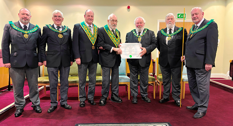 | David was absolutely shocked by this turn of events and warmly thanked the GM for the Preferment. 50th celebration certificates from Grand Council and District Grand Council were read by the District Grand Secretary, Marc Goldsworthy, and then presented to him. The celebration ceremony was thus concluded. David and the GM returned to their seats to great acclamation and congratulations from the Brethren. I’m sure that as I write this article, David will be adding his new accolade to his CV…….. just in case. |
